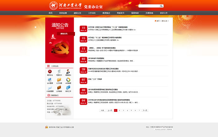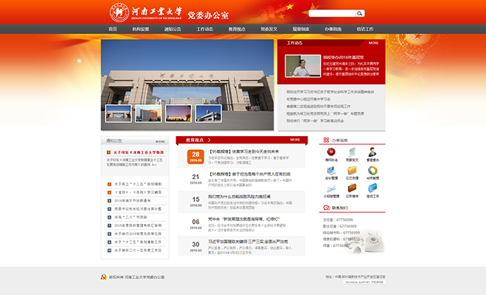 河南工業大學黨委辦公室是校黨委直接領導下的綜合辦事機構,是為學校黨政領導服務,為各院系各部門服務,為全校師生員工服務的機構。具有參謀助手、綜合協調、信息處理、督查服務等基本職能。