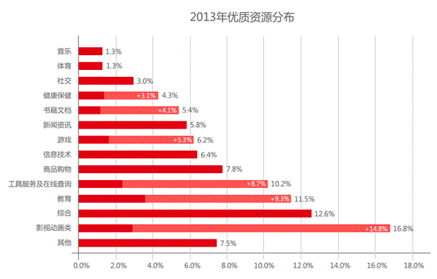 中國PC網站資源概況:根據2013年PC端用戶需求的趨勢,影視、教育、旅游、游戲、商品供求五大類需求仍將占據主導地位且有增長趨勢,保健養生、金融理財等需求增長趨勢明顯,站長在運營網站過程中可綜合考慮以上幾類需求,加強網站相關內容建設。