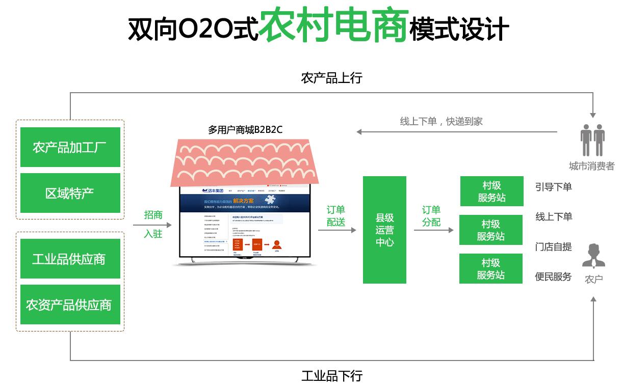1. 其生態體系流程核心是一個完整的電商系統,解決供求,解決縣域電商,解決農村電商,解決產品上下行關系,真正解決了一二線城市銷售到四五線農村市場, 農村特色產品賣到一二線大城市。