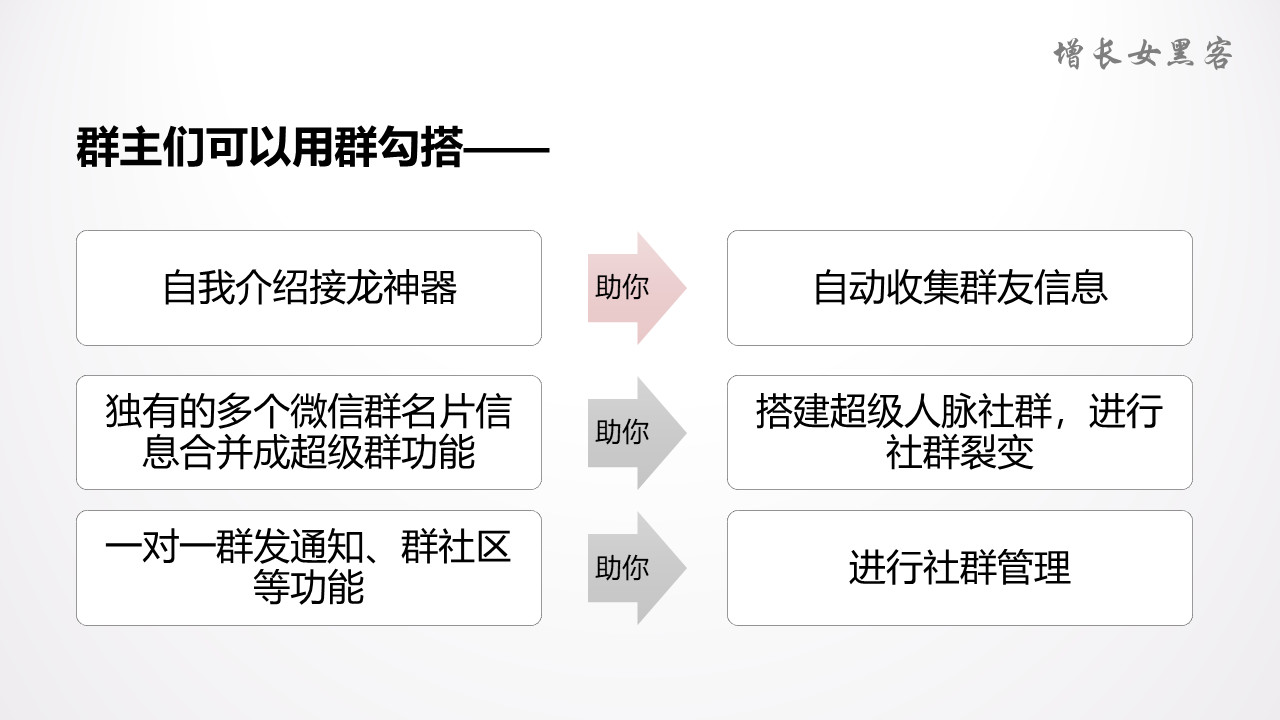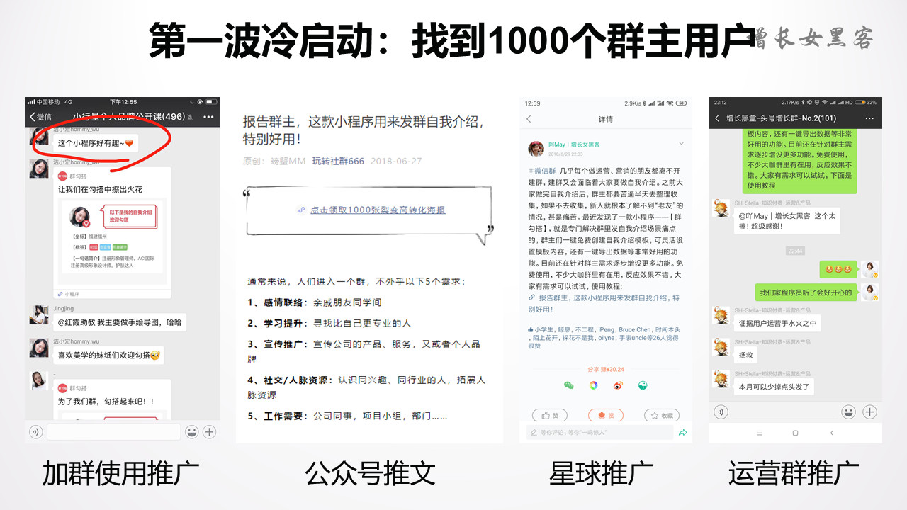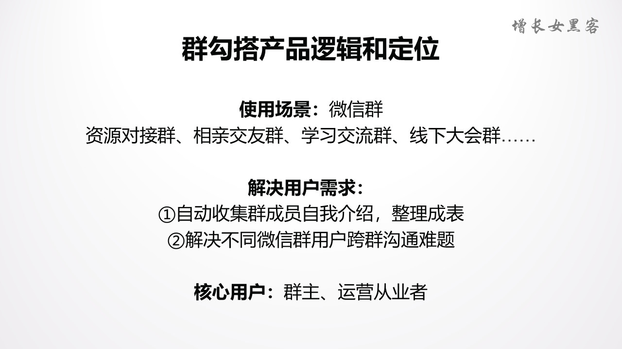 這個時候我就要思考第二個問題了——怎么去加速推廣節奏,吸引更多的群主用戶過來使用群勾搭,讓這個產品快速爆發起來。
