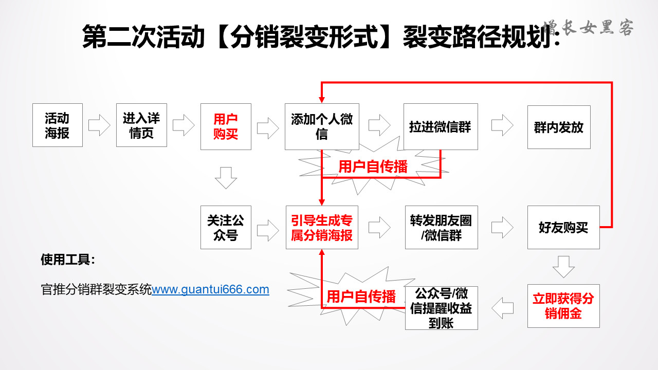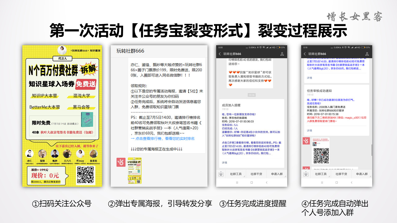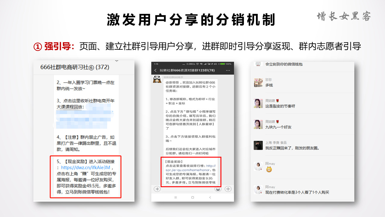 但是只是這樣是遠遠不夠的,裂變速度不夠快,所以我就想,怎么樣才能讓這些已經進群的人再幫我去做推廣呢?