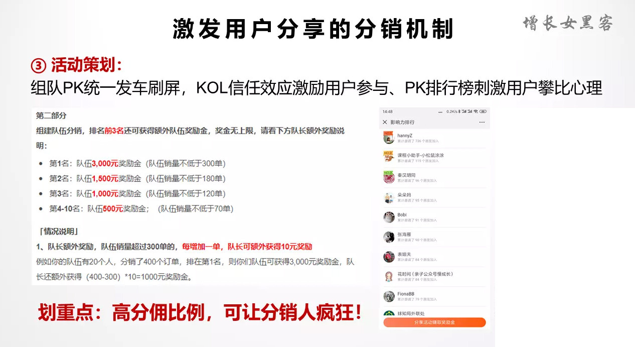 比如說,我們對外統一設計的分銷比例是50%,那如果參加分銷組隊的隊員,我們會額外給一些獎勵,比如說排名第一、第二、第三的戰隊,會有額外的團隊現金獎勵。這樣就會刺激這些隊長和隊員,因為他除了傭金收益外,還有額外的戰隊獎金獎勵,比一般的人獎勵更高。