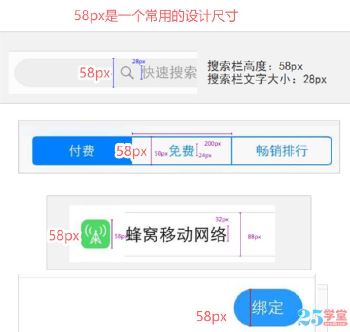 在iPhone6設計稿中,58px 也是一個常用的設計尺寸。
