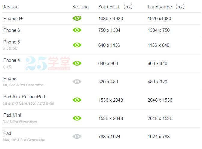 目前,很多APP設計師的APP Ui設計稿是先做iPhone6的,方便向上適配iPhone6Plus,也方便向下適配iPhone5和iPhone4的尺寸。這一節課也算是25學堂為大家精心整理的iPhone6界面設計尺寸規范大全。