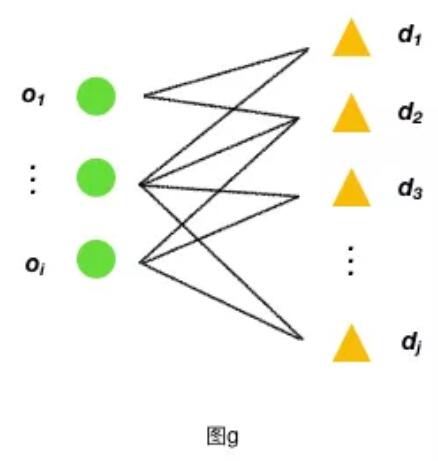 圖論是組合數學一個分支,在圖論中,圖是由點和這些點的連線所組成的,邊在實際業務場景中的衡量值,如時間,距離等,被稱之為權。把一個圖的頂點劃分為兩個不相交的點集合,使得每一條邊都分別連接這兩個集合中的頂點。如果存在這樣的劃分,則此圖為一個二分圖(或二部圖),如下圖 c :