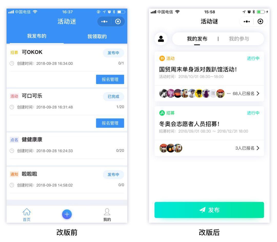 經過團隊的激烈辯論,最終決定把“我的發布”和“我的參與”放到一起,這樣能給用戶最直接的感受,原因有以下幾點: