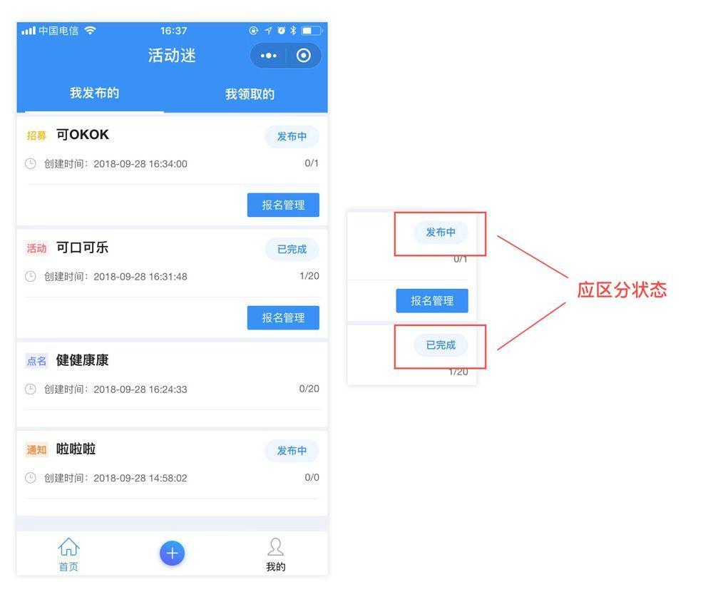 這個算是一個低級錯誤,“發布中”和“已完成”應該有不同的狀態區分。